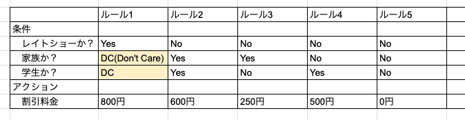 デシジョンテーブルは、条件の集合に基づいて、複雑なビジネスルールを表現するもの